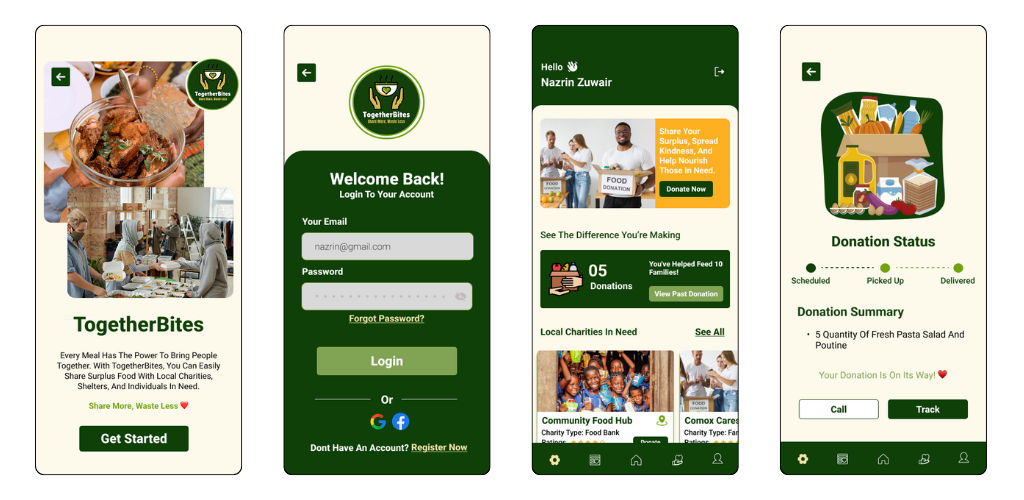 A UI/UX design project for a mobile app connecting neighbors through food donations and pickups. Includes interactive dashboards, donation tracking, and an intuitive interface created entirely in Figma, with a complete design system and high-fidelity prototypes.